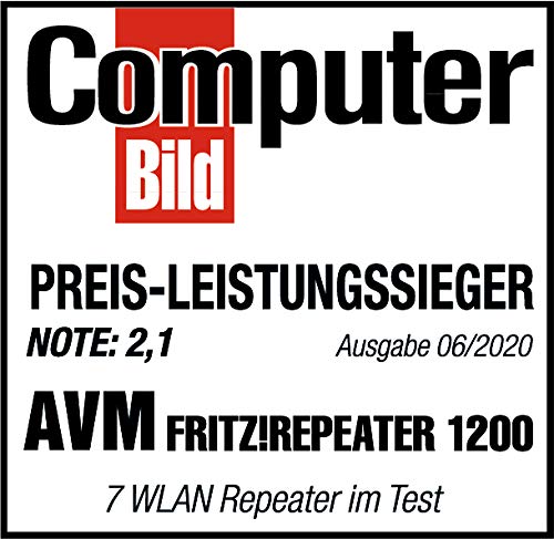 Einzelheiten: AVM FRITZ!WLAN Mesh Repeater 1200 (Zwei Funkeinheiten: 5 GHz (bis zu 866 MBit/s), 2,4 GHz (bis zu 400 MBit/s), 1x Gigabit-LAN, deutschsprachige Version)