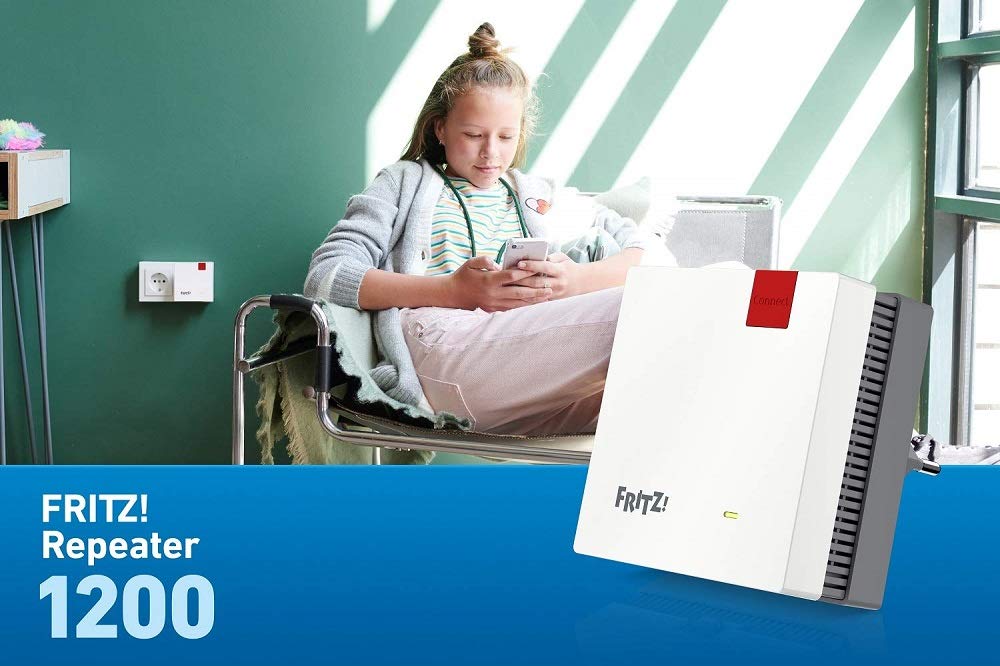 FRITZ!WLAN Repeater 1200 – Dualband Repeater AC1200, bis 866 Mbit/s, Mesh