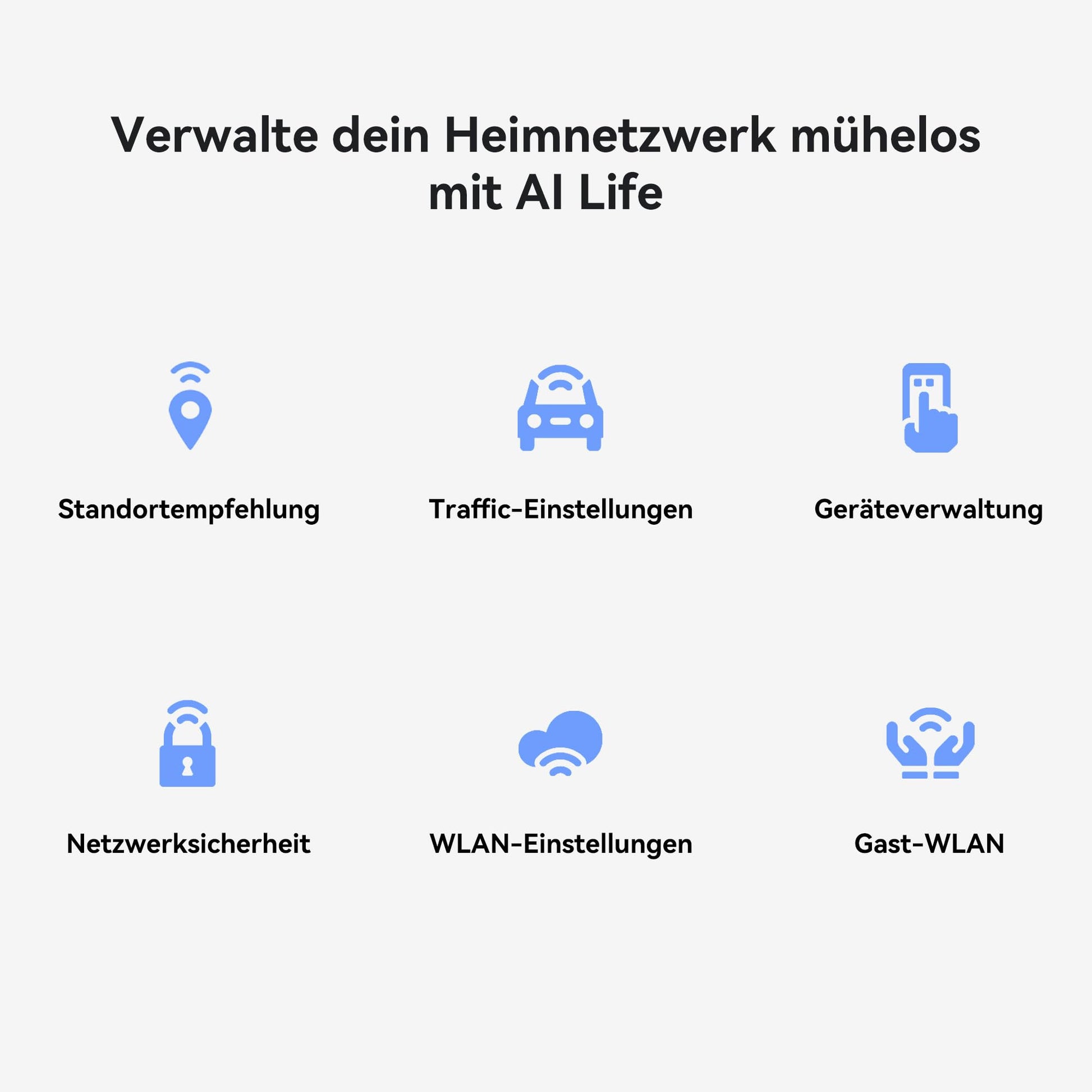 - Abdeckungs-Maps und einfache Netzwerkfehlerbehebung: Die HUAWEI AI Life-App macht es einfach, den Netzwerkstatus des Routers in Echtzeit zu sehen und Herausforderungen zu meistern, da sie Netzwerkfehler für dich behebt.